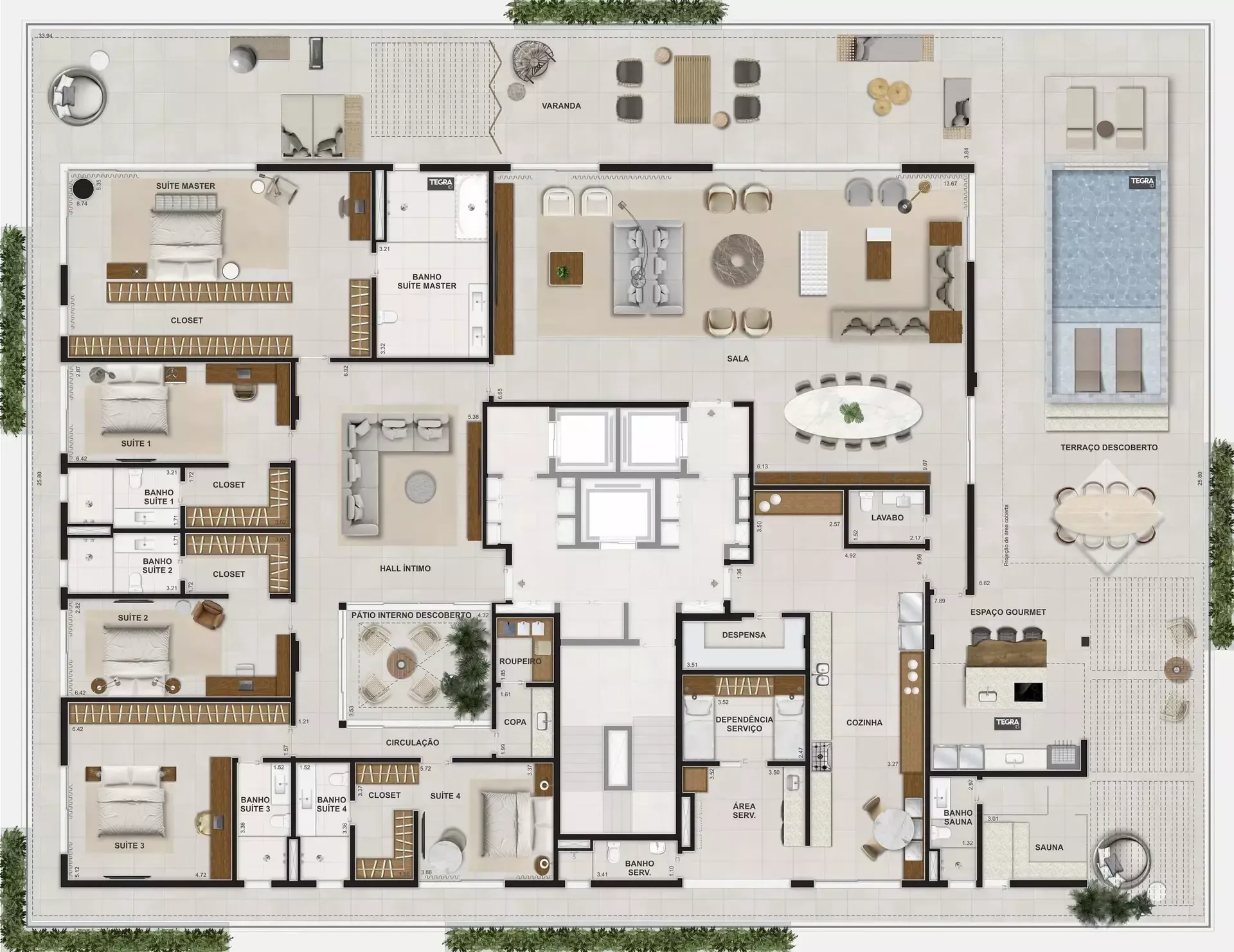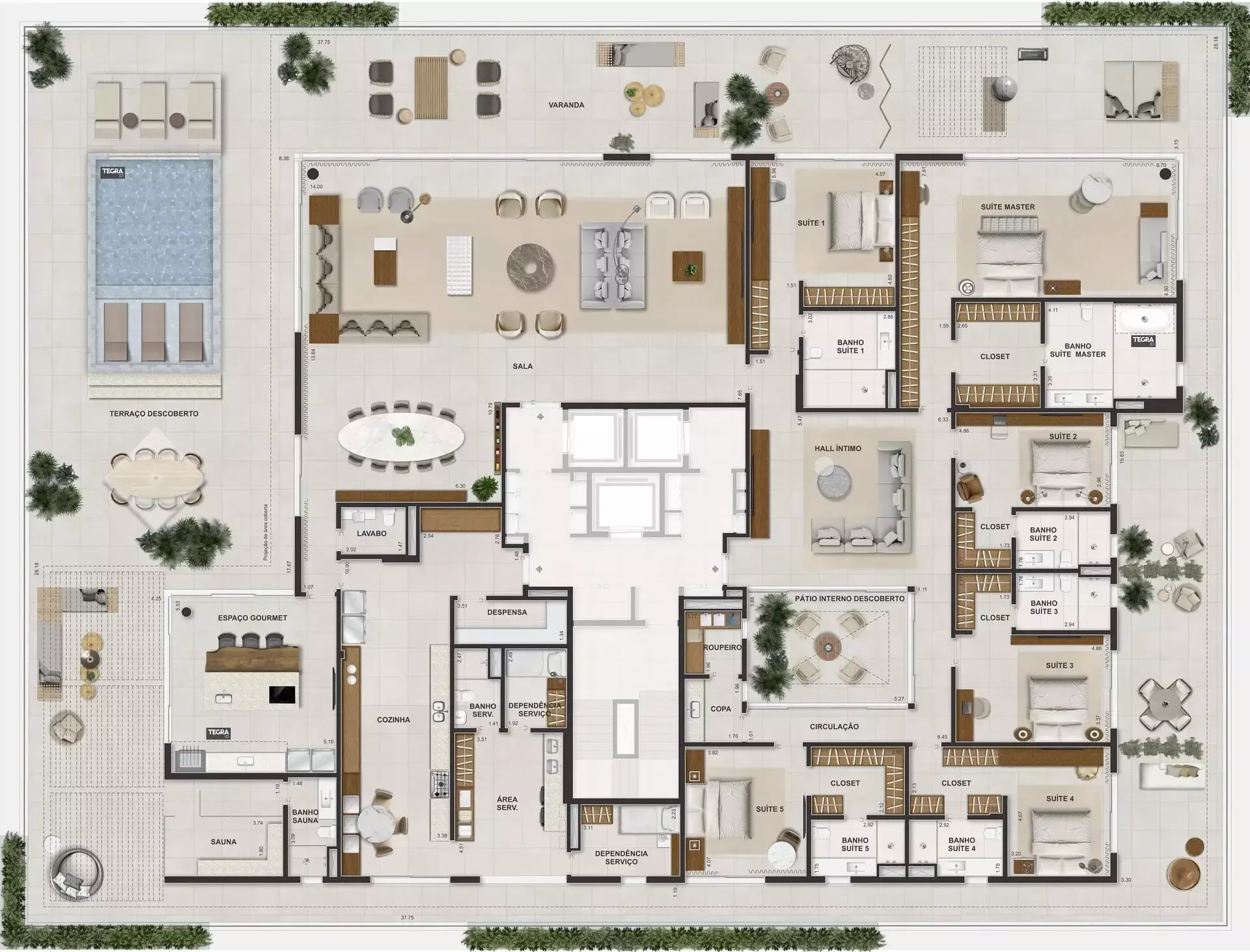 Uma parceria internacional Tegra + Lissoni que une a elegância italiana à essência brasileira, traduzindo em forma e espaço o encontro entre dois olhares que compartilham o mesmo ideal de sofisticação e autenticidade.